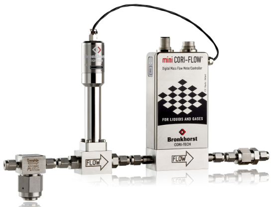 Bronkhorst Cori-Tech manufactures Coriolis Mass Flow meters and controllers for liquid and gases. The Cori-Flow product range offers true mass flow measurement and control from 0.4g/hr up to 5g/hr The Mini-Cori Flow series contain a single loop sensor tube which oscillates with flow. Changes in flow results in a phase shift which is detected by a patented sensor. The output signal is strictly proportional to true mass flow. Coriolis mass flow measurements is fast, accurate, and inherently bi-directional. Density and fluid temperature readings are available as secondary inputs Mini Cori flow instruments have an integral PID controller which allow them to be used with suitably sized pumps to offer a fast accurate system for delivering liquids in dosing applications. Bespoke Cori-Fill firmware is available that allows options for batch dosing, & Rapid accurate filling operations. All instruments offer analog and digital signals along with options for common Bus protocols. Please follow links below for further information |