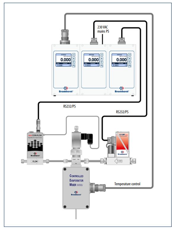 The evaporator is combined with Bronkhorst liquid and Gas Mass flow instruments customised for your unique application